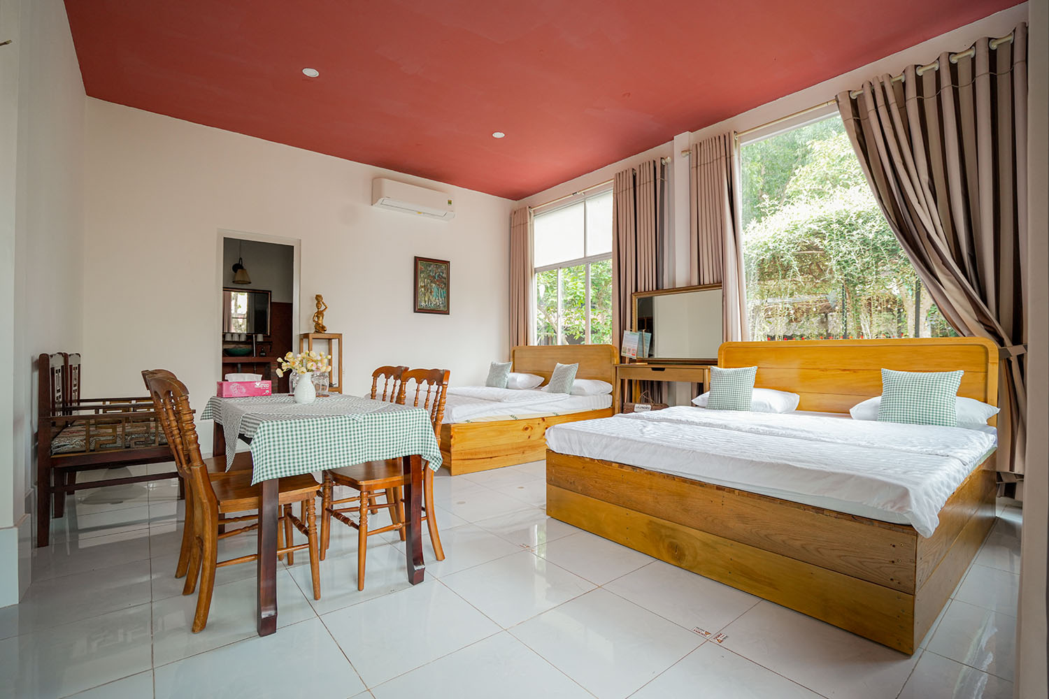 Phòng gia đình với diện tích khoảng 35m2. Phòng phù hợp với gia đình tiêu chuẩn cho 04 người lớn. Trẻ em dưới 5t có thể ngủ cùng bố mẹ.