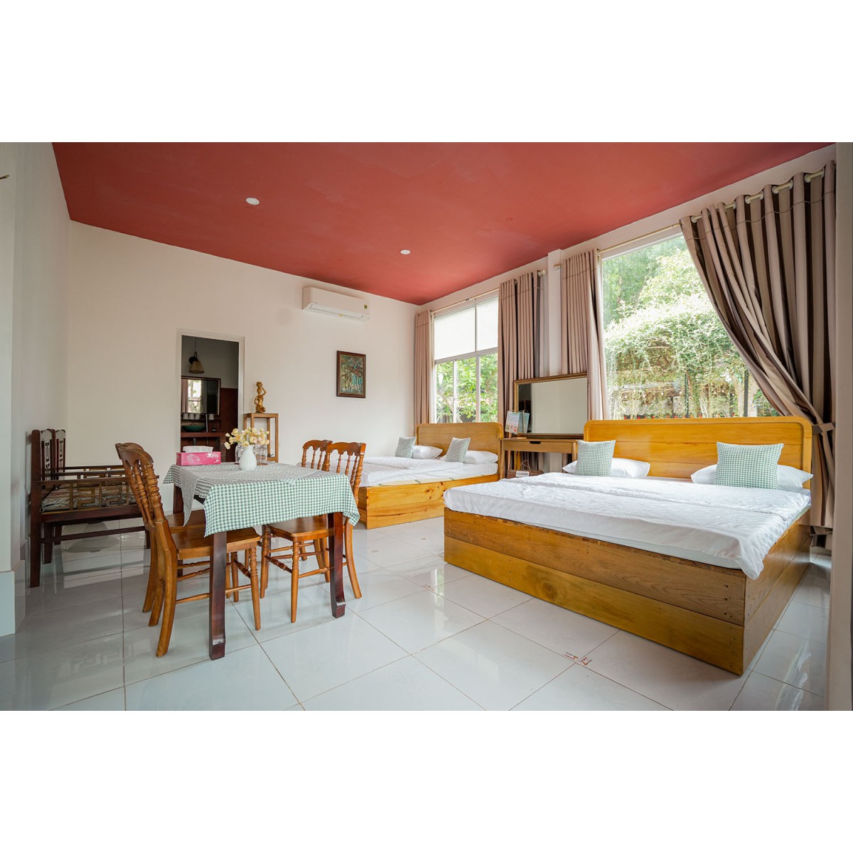 Phòng gia đình với diện tích khoảng 35m2. Phòng phù hợp với gia đình tiêu chuẩn cho 04 người lớn. Trẻ em dưới 5t có thể ngủ cùng bố mẹ.